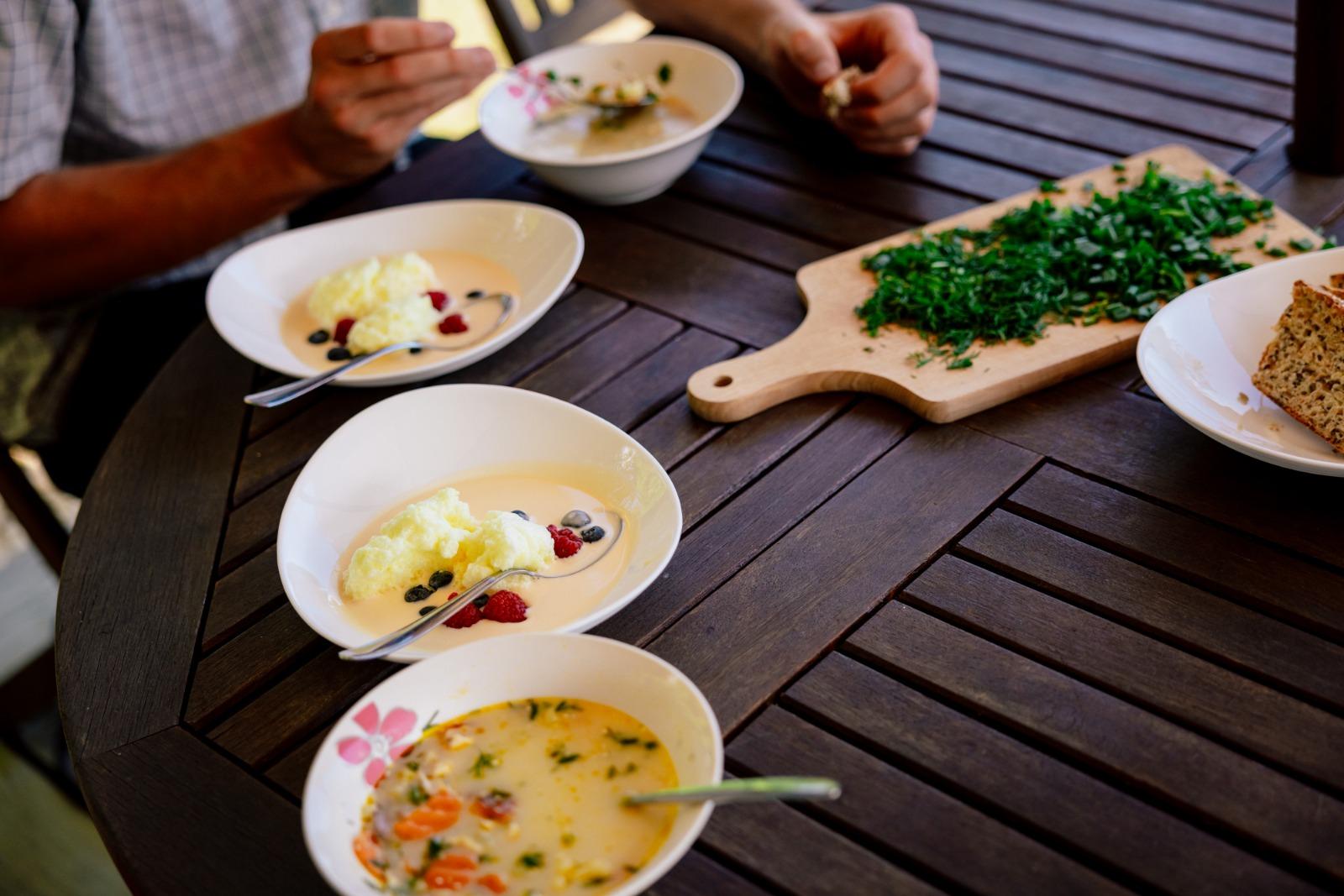 Beim Besuch des Bauernhofs „Kurmīši“ bieten die Besitzer eine Verkostung ihrer Produkte an: Honig mit Tee und Quittenkonfekt.