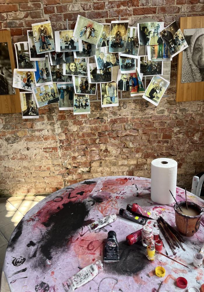 Ausstellung „Pi vīna golda“ („An einem Tisch“)