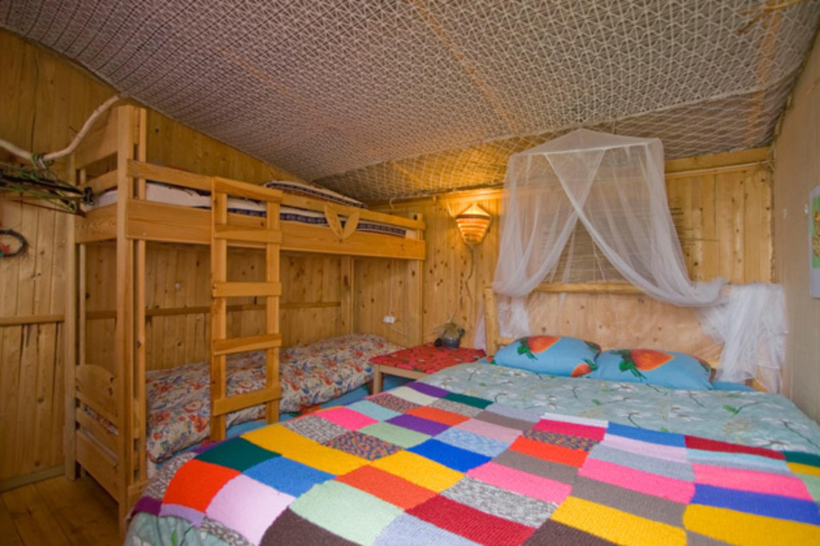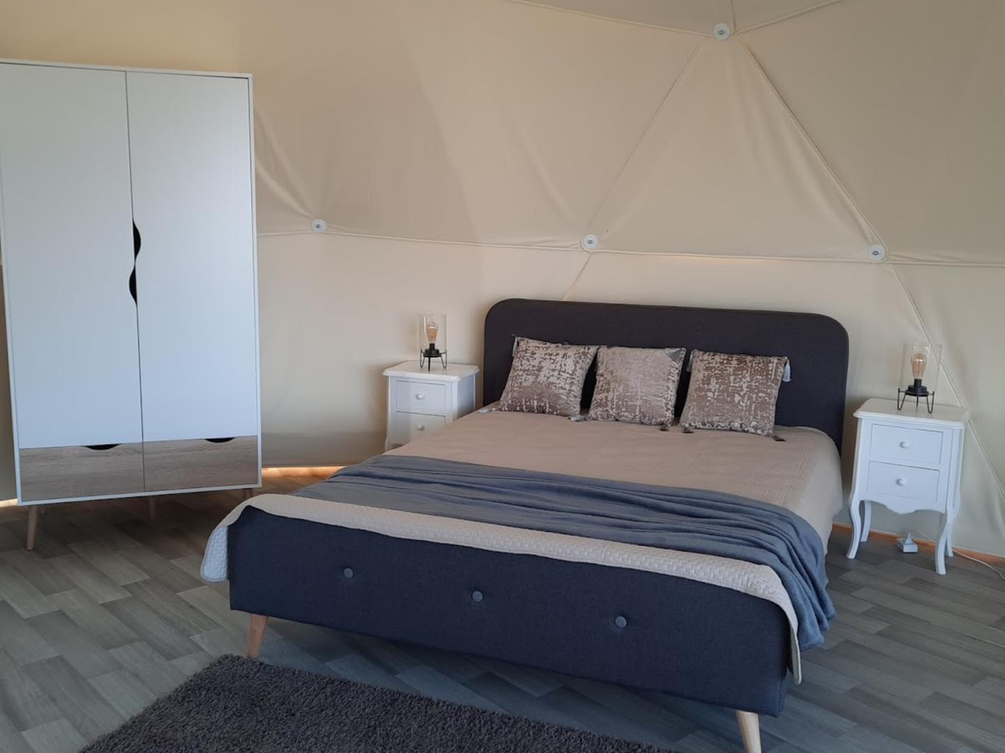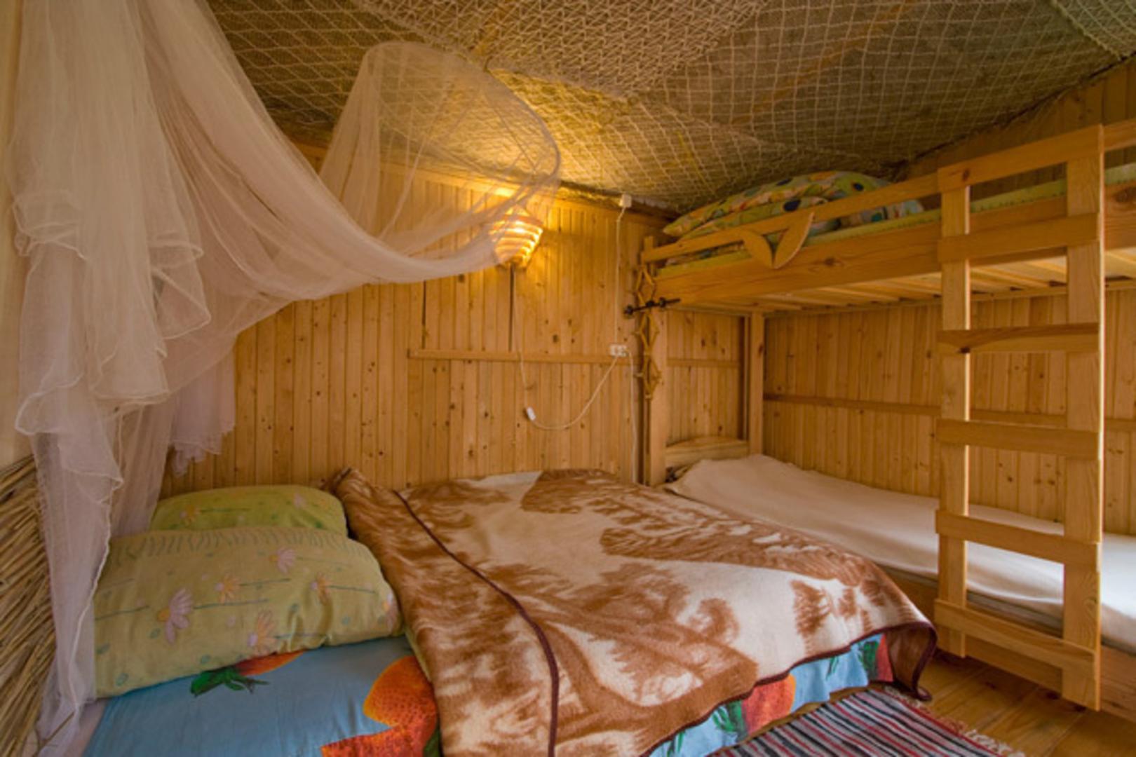 These cottages are suitable for a relaxed stay for a small family or a group of 2–4 people. The main advantage is a beautiful view from the terrace over the pond and the entire area. Each cottage has a double bed, a sofa, a chair, and a table. In one corner, there is a small kitchen equipped with a bar counter, refrigerator, coffee and tea machine, dishes, and kitchen towels. On the terrace, there is a table with chairs and a large umbrella in case of bad weather. Capacity – 4 people per cottage.