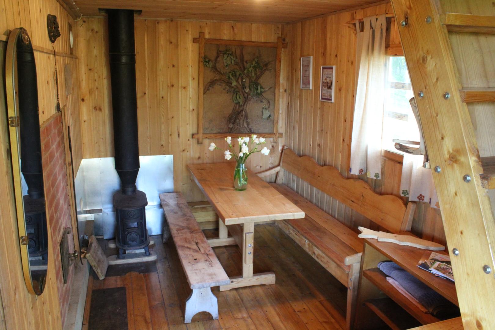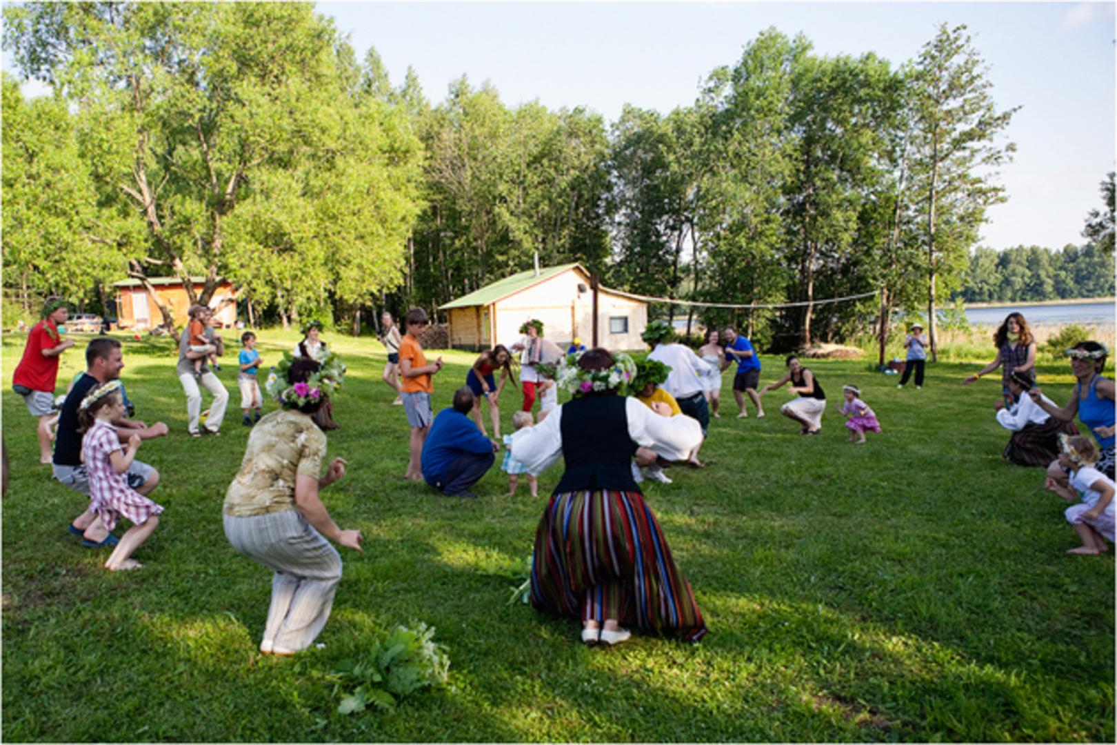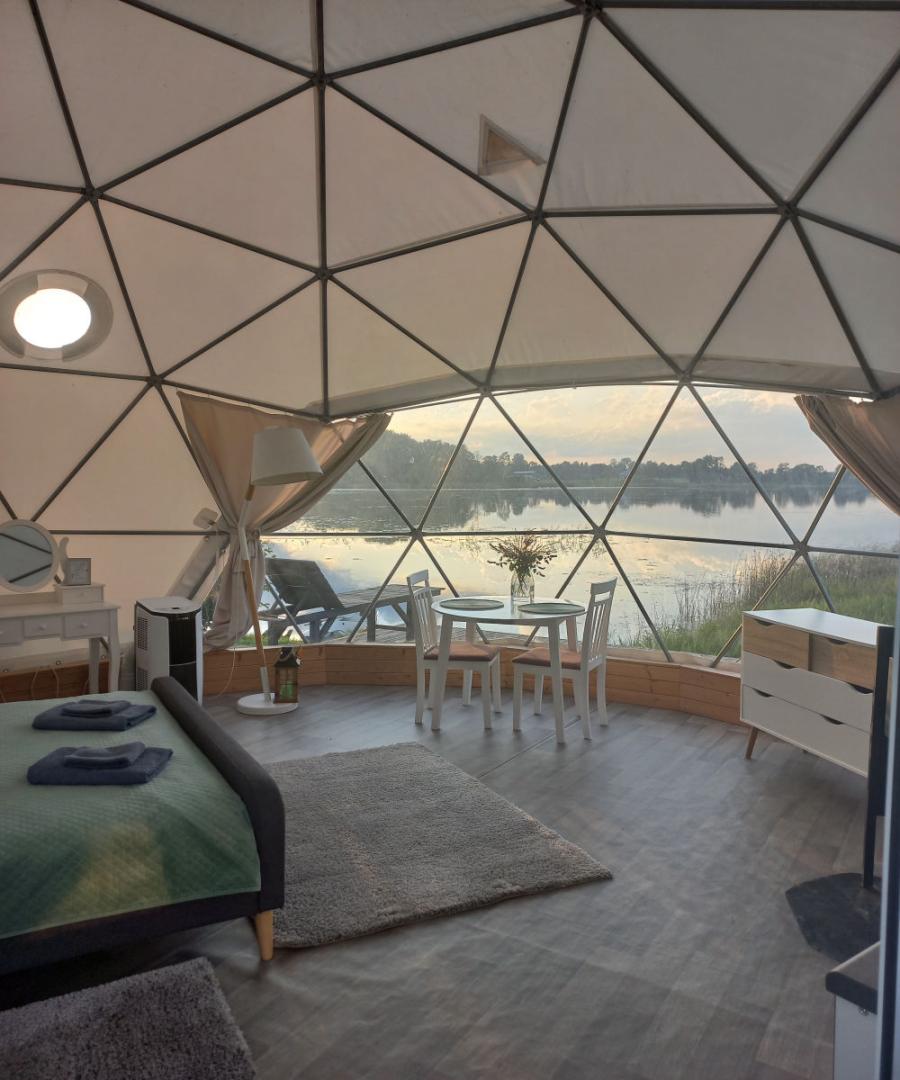 Guests are also offered a small sauna, equipped with a changing room and a shower. Sauna master services can be arranged, offering various sauna rituals to improve health, wellbeing, and beauty: bathing with different branch whisks, pouring water for circulation, and, optionally, scrubs made from natural materials prepared by the hosts from locally sourced ingredients. Visitors can swim in the pond located on the park grounds.