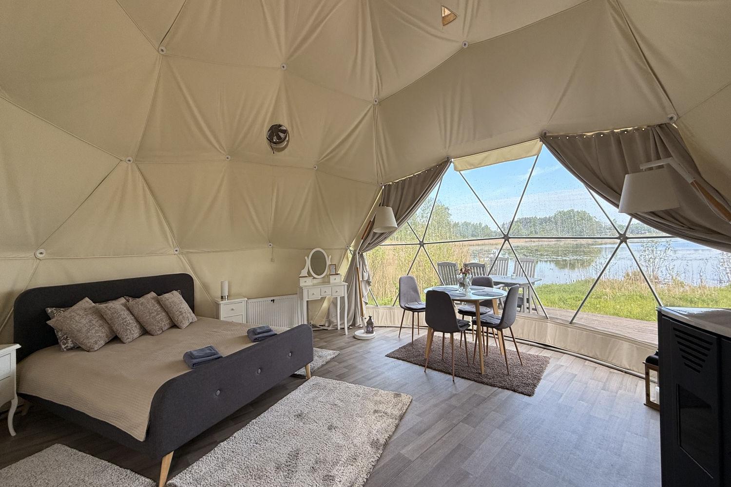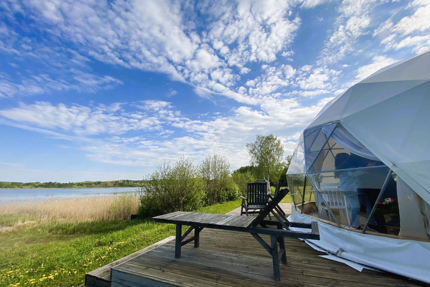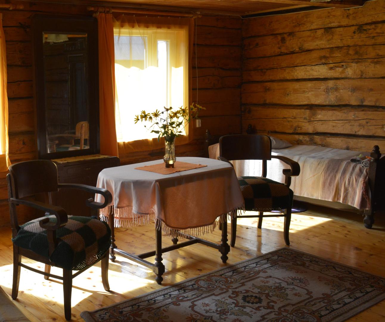 Guests are also offered a small sauna, equipped with a changing room and a shower. Sauna master services can be arranged, offering various sauna rituals to improve health, wellbeing, and beauty: bathing with different branch whisks, pouring water for circulation, and, optionally, scrubs made from natural materials prepared by the hosts from locally sourced ingredients. Visitors can swim in the pond located on the park grounds.