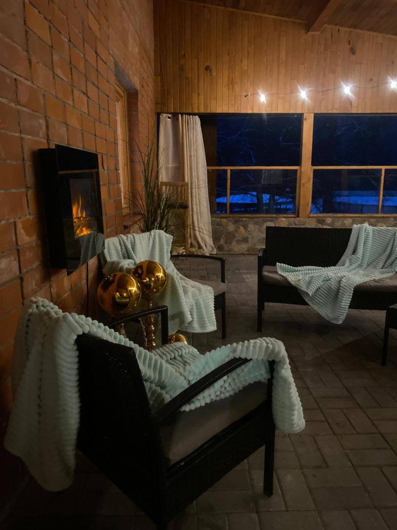 Das große Ferienhaus verfügt über 2 Etagen, wobei sich im 1. Stock ein großer Raum zum Entspannen, ein kleineres Zimmer mit einem Doppelbett sowie eine voll ausgestattete Küche (Kühlschrank, Herd, Backofen, Mikrowelle, Wasserkocher, Kaffeemaschine) befinden Maschine, Geschirr, Geschirrtücher). Im 2. Stock gibt es Schlafplätze für 7-8 Personen. Alle Betten sind mit Bettwäsche und Handtüchern ausgestattet. Das Haus verfügt über einen Kamin, eine Terrasse, einen Pavillon, Tische, Schaukeln und Sie können auch einen Grill nutzen.