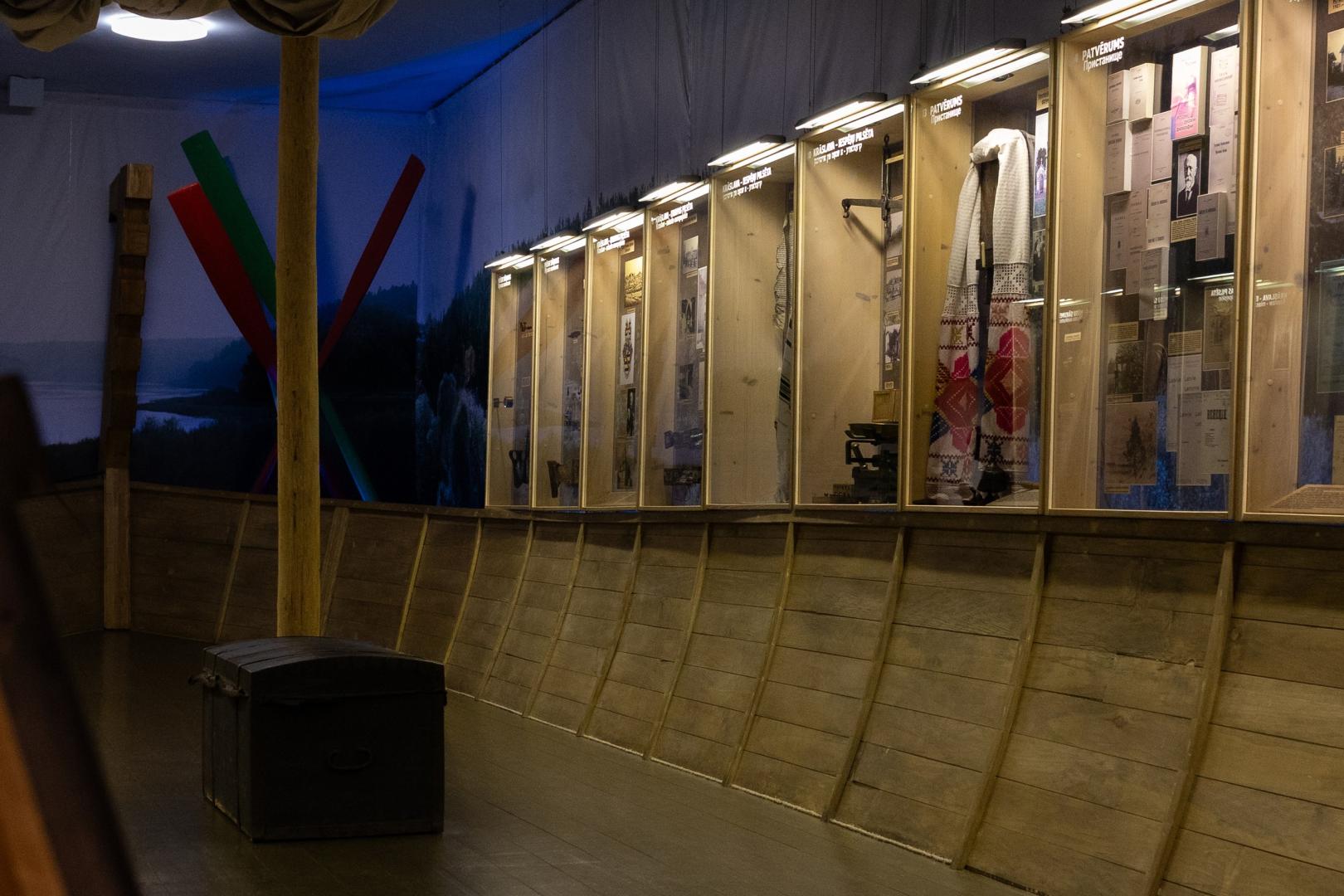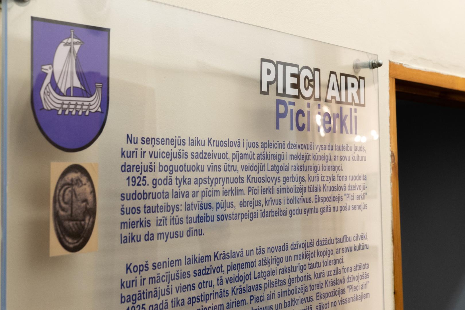 Das Museum bietet die Möglichkeit, eine einzigartige Ausstellung zu besichtigen, die in einem 17 Meter langen, improvisierten Boot gestaltet ist. Im Laufe der Jahrhunderte lebten in Krāslava und seiner Umgebung Menschen verschiedener Nationalitäten, die gelernt haben, miteinander zu leben, das Unterschiedliche zu akzeptieren und das Gemeinsame zu suchen. Durch ihre Kulturen bereicherten sie einander und schufen so eine besondere Tradition der Toleranz zwischen den Völkern. Im Jahr 1925 wurde das Stadtwappen von Krāslava bestätigt, das auf blauem Grund ein silbernes Boot mit fünf Rudern zeigt. Die fünf Ruder symbolisierten die damals in Krāslava lebenden Nationalitäten: Letten, Polen, Russen, Belarussen und Juden. Ziel der Ausstellung „Fünf Ruder“ ist es, die Wechselwirkungen dieser Volksgruppen von den frühesten Zeiten bis in die Gegenwart nachzuzeichnen.