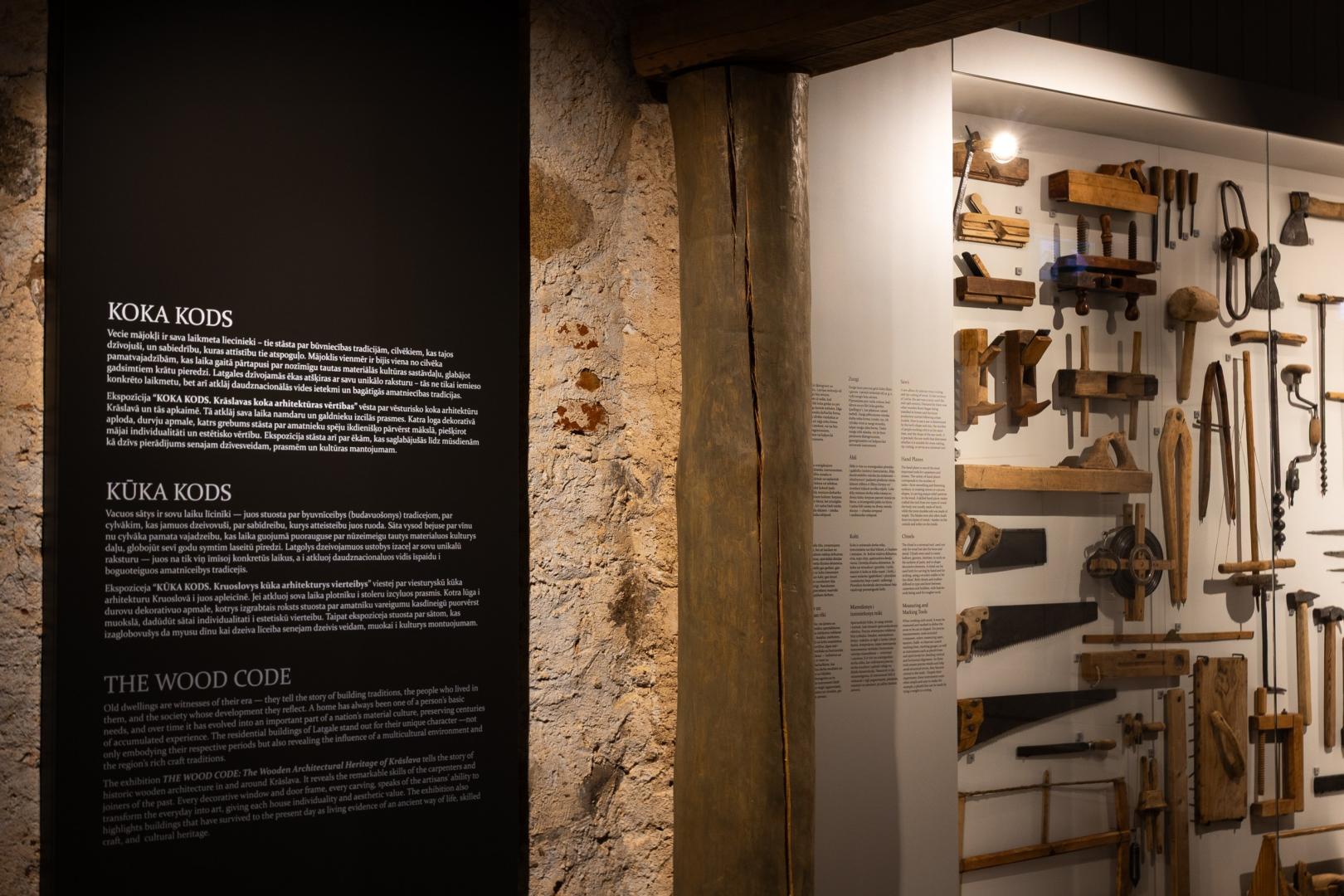 Die Ausstellung erschließt die historische Holzwohnarchitektur des Bezirks Krāslava sowie das von ihren Meistern geschaffene handwerkliche Erbe. Besonderes Augenmerk wird auf architektonische Details der Häuser gelegt – Tore, Türen, Veranden, Fenster und deren dekorative Elemente –, die das charakteristische Erscheinungsbild der ländlichen Gehöfte und der städtischen Holzbauten geprägt haben. Die Ausstellung ermöglicht es, die mit Geduld und handwerklicher Meisterschaft gefertigten Holzkonstruktionen und feinen Verzierungen kennenzulernen, die den Gebäuden ihre individuelle Identität verliehen. Ergänzt wird sie durch eine Auswahl an Werkzeugen, die das Verständnis der Arbeitsmethoden der Handwerker sowie des Entstehungsprozesses der praktischen und dekorativen Elemente der Häuser vertiefen.