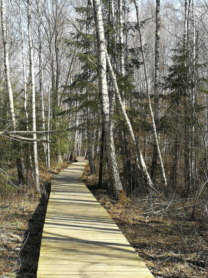 Der Weg ist linear. Bei trockenem Wetter kann die Strecke als Rundweg begangen werden, indem man über den Feldweg am Rand der Lichtung zurückkehrt (880 m über den angelegten Steg, 3 km, wenn der gesamte Weg umrundet wird).