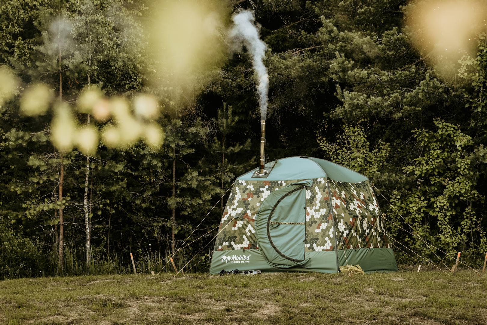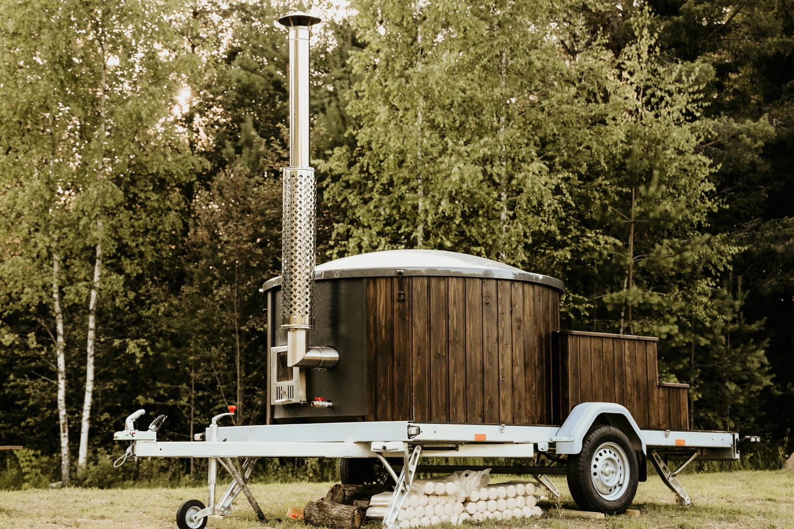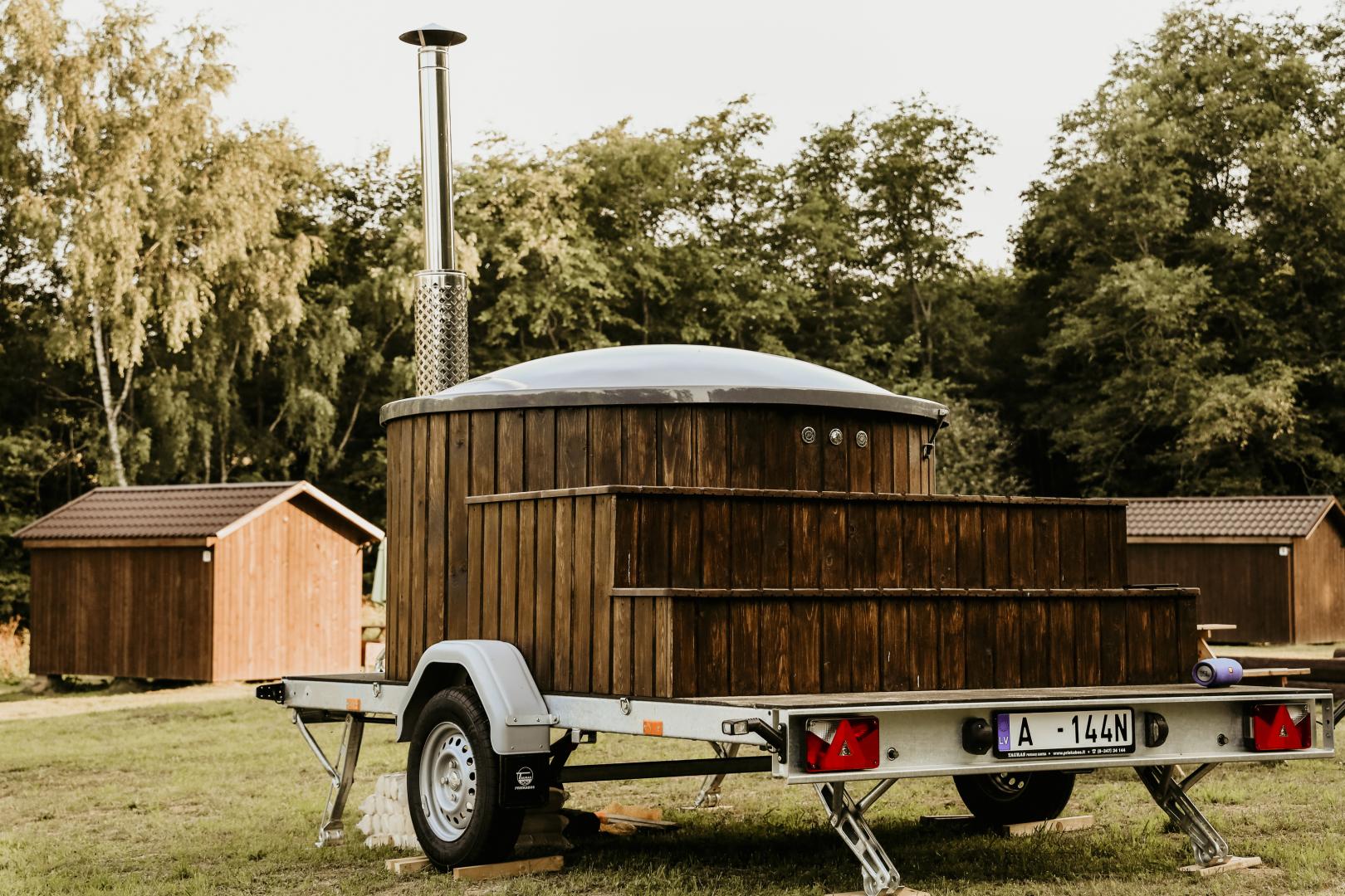 - pārvietojams koka kubls kempinga viesu atpūtai un labsajūtai;
