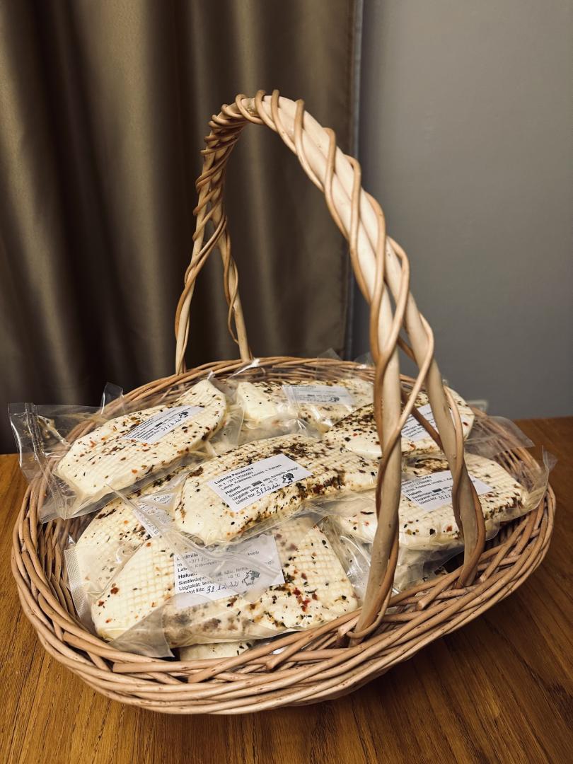 Apciemojot zemnieku saimniecību "Kurmīši", saimnieki piedāvā degustēt savu produkciju: medus ar tēju, cidoniju sukādes.