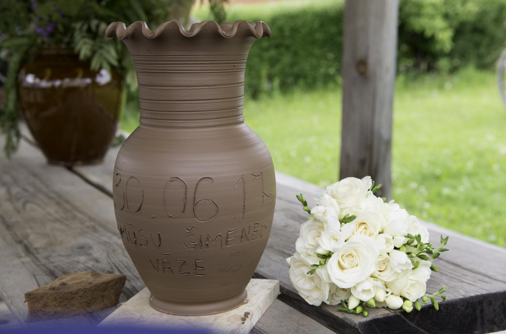 Создайте в день своей свадьбы первое посудо из глины вашей семьи, который станет отличным памятным сувениром, украшенным подписями и пожеланиями всех ваших гостей. Преподавателями на этом увлекательном занятии являются керамисты Ольга и Валдис Паулиньи, которые приглашают разбить глиняный сосуд «на счастье» и на его месте создать новый. Молодожёнов приглашают как в мастерскую, так и выезжают на выбранное вами место!
