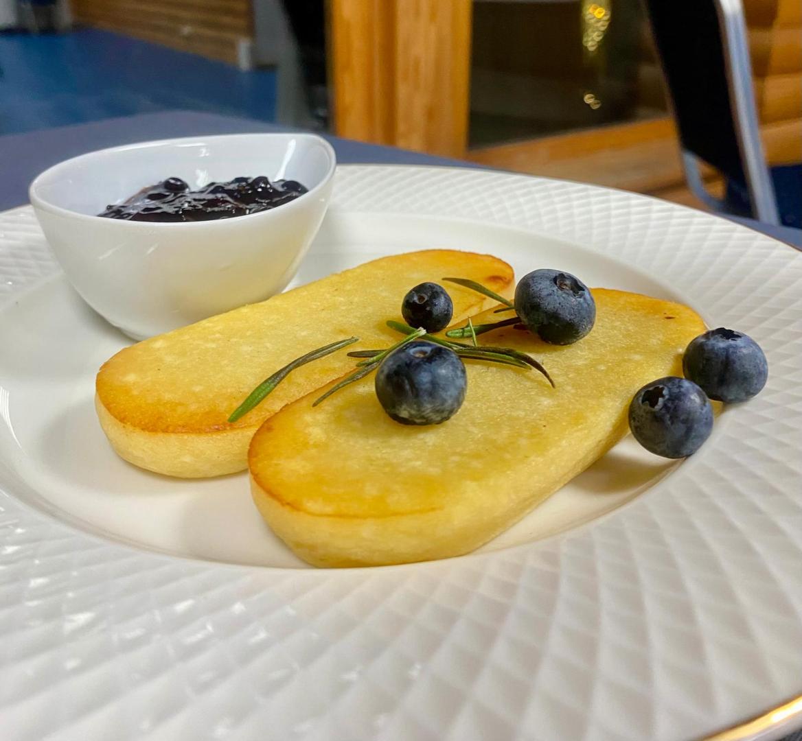 При входе расположена просторная банкетная зала, рассчитанная на 25 гостей. Её можно преобразовать в дополнительную спальню, так как имеются две двухместные раскладные диван-кровати. Полностью оборудованная кухня соединена с банкетной залой и оснащена холодильником, плитой, духовкой, микроволновой печью, стиральной машиной и чайником.