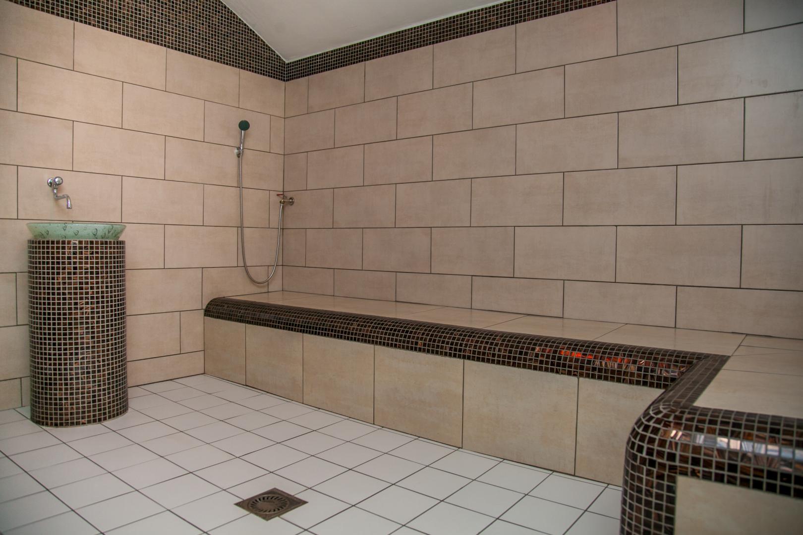 Также в бассейне есть SPA зона, в которой работает сауна (сухая, без веников, температура 70-90 C), паровая баня (температура 45-47 C) и ледяная комната, в которой кусочки льда приятно охладят после посещения сауны или паровой бани.