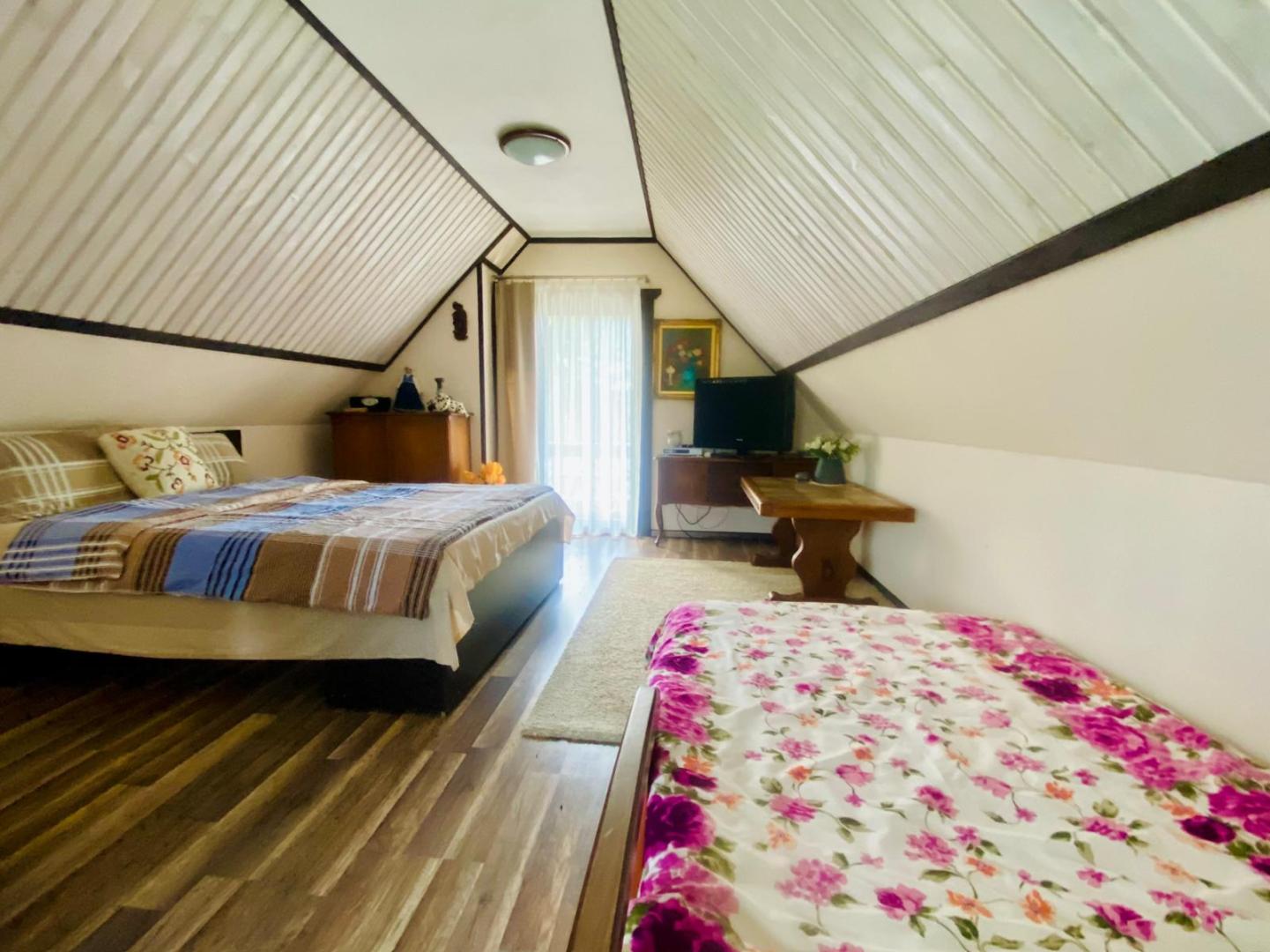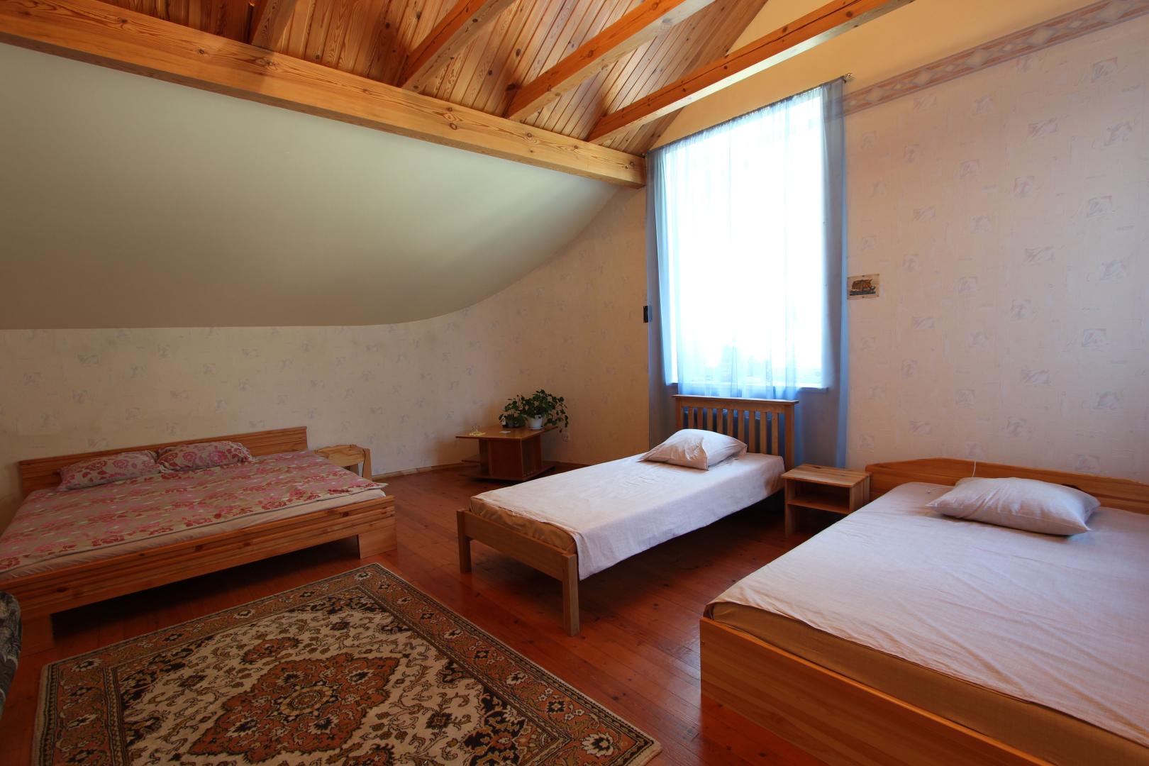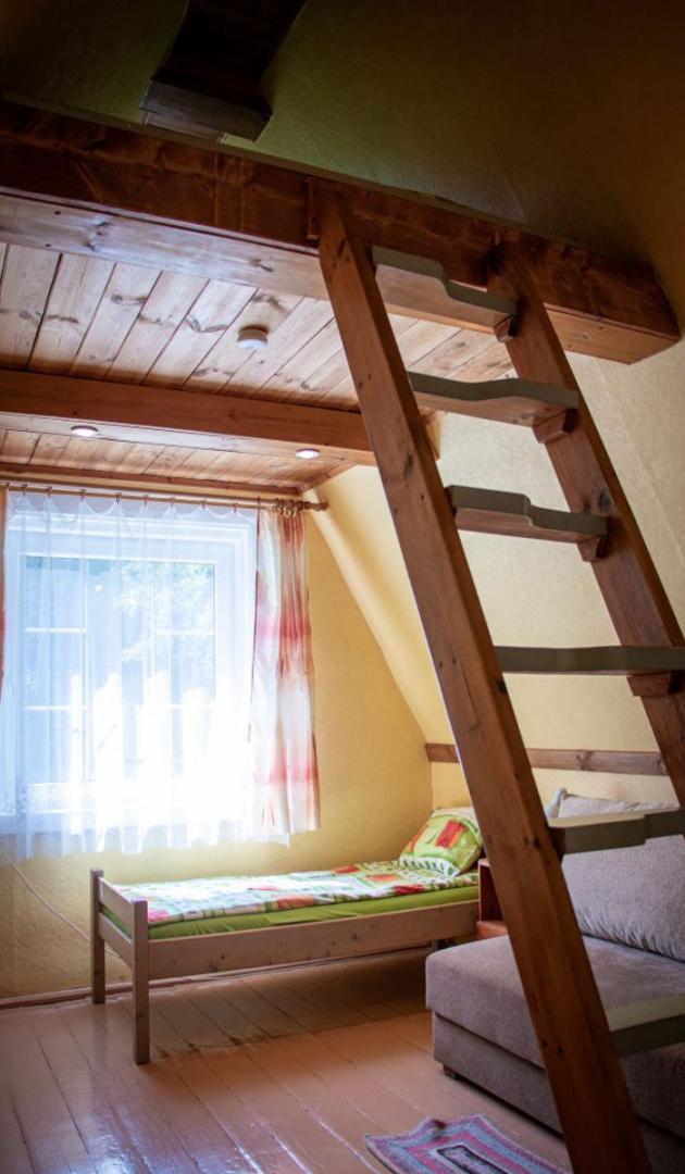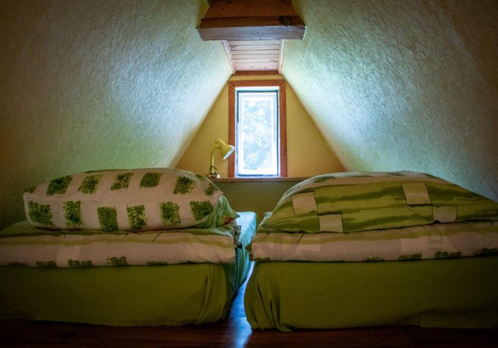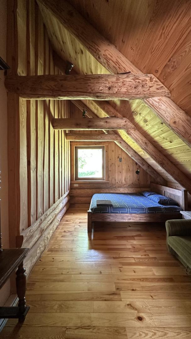 На небольшом чердаке расположены две дополнительные спальные места на односпальных матрасах. Попасть туда можно по крутой лестнице, поэтому рекомендуется ознакомиться с фотографиями, чтобы убедиться, что это подходит вашей группе.